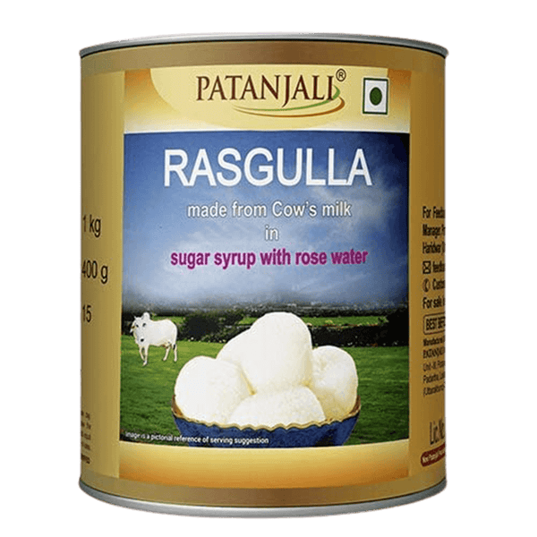 Patanjali Rasgulla 1Kg Made with pure cow milk - Soft & Spongy, 15 pieces, 1-kilo tinRasgulla is an Indian sweet dish. Milky white and sugar ...