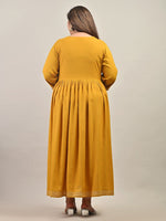 Swasti Plus Size Ethnic Motif Embroidered Round Neck Gathered Fit & Flare Maxi Dress Product Details Yellow embroidered a-line dress Round...