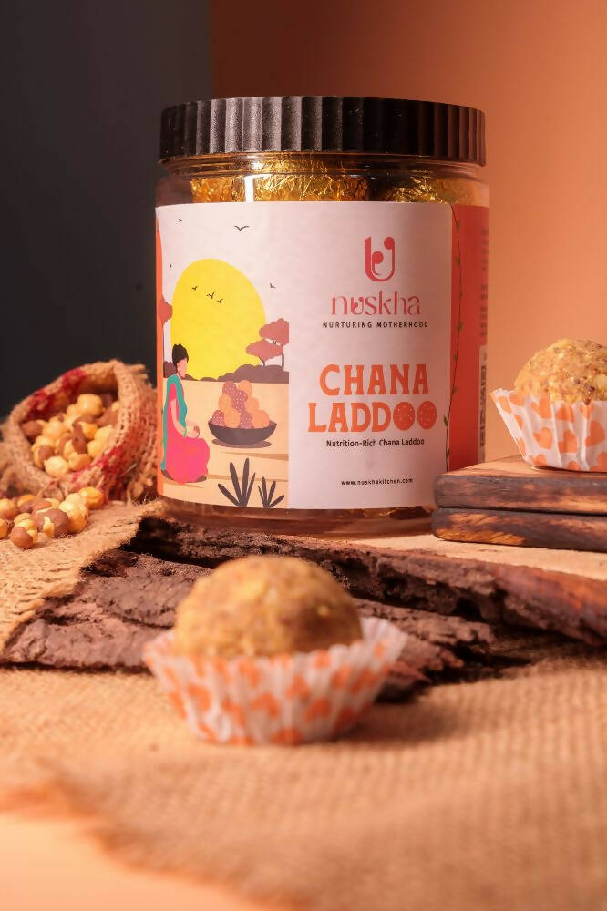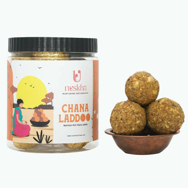 Nuskha Chana LaddooIngredients: Roasted Grams [chana Bhuna] Jaggery/mishri/ Sugar Free Ghee Gola / Coconut Oats Fennel [saunf] Almond [badam] Shelf...