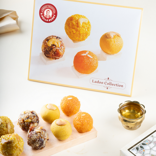• Indulge in our Premium Laddu Assortment, featuring a mouthwatering selection of traditional favorites: Bandar Laddu, classic Motichur Laddu, Dry Fruit Laddu, and delightful Boondi Laddu & Gond Laddu