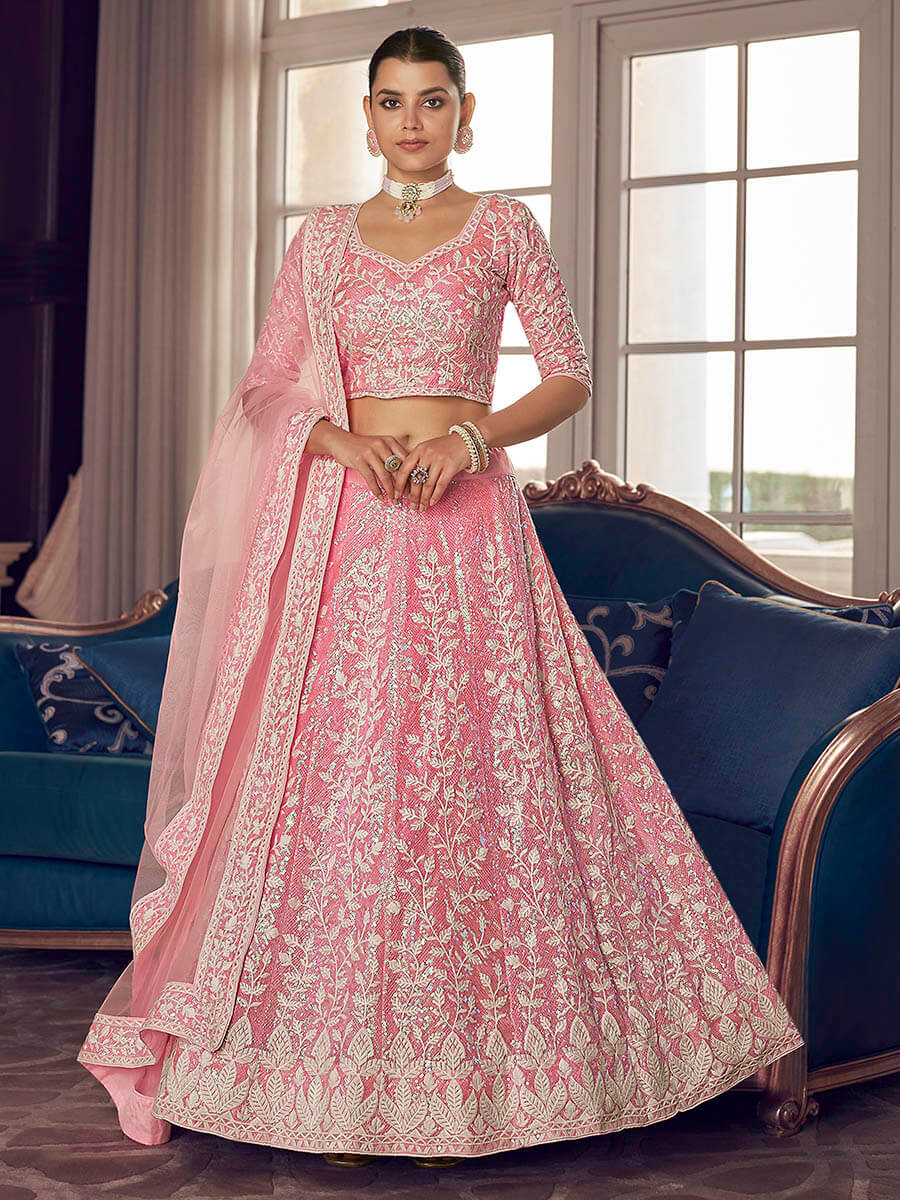 Myra Pink Organza Embroidered Designer Lehenga - Distacart