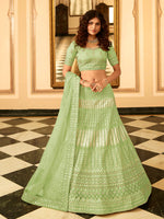 Myra Pista Green Organza Embroidered Lehenga Choli