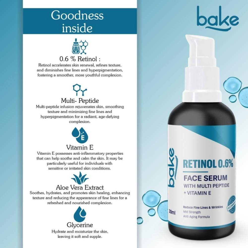 Bake 0.6% Retinol Mid Strength Face Serum With 2% Multi Peptide & Vitamin E - Distacart