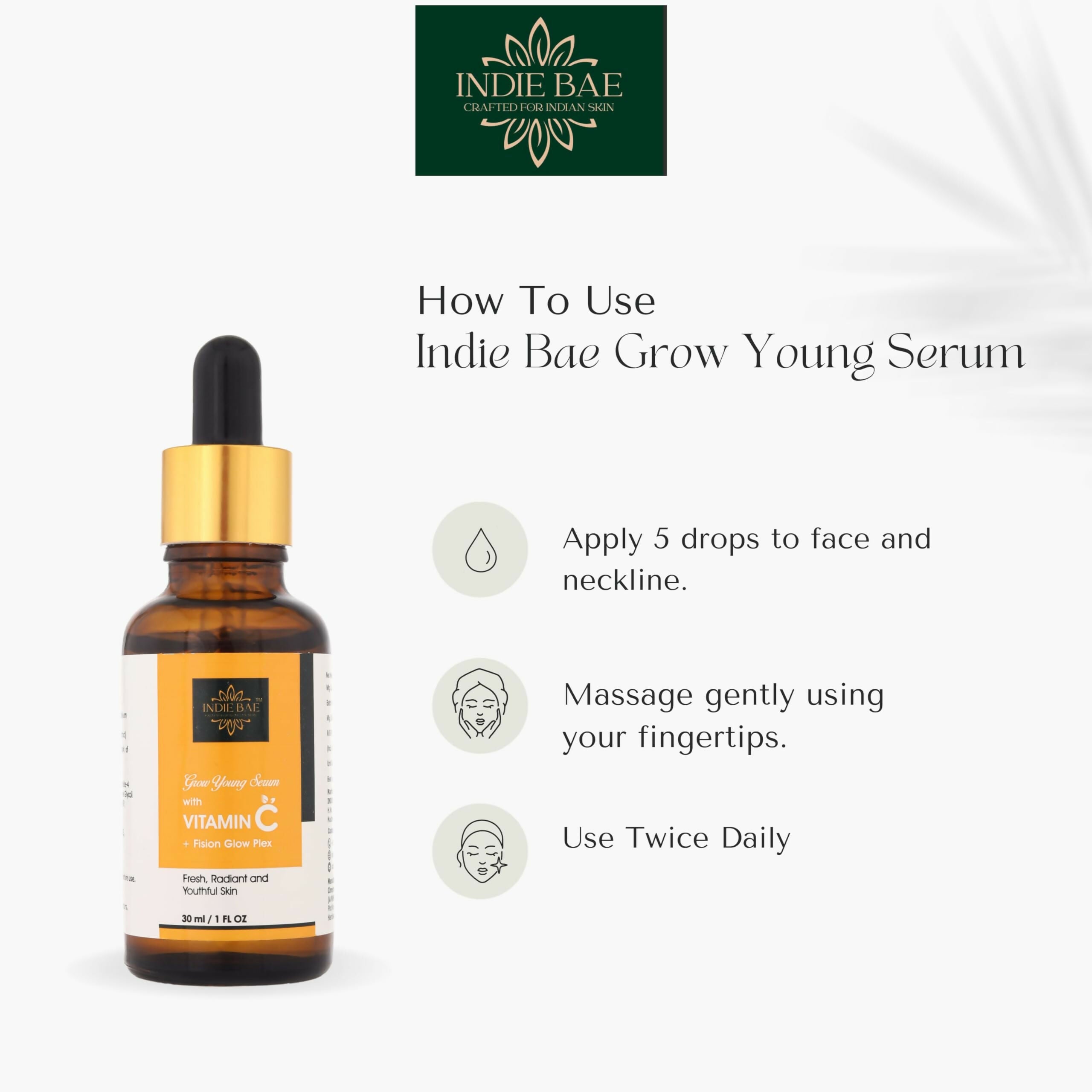 Indie Bae Crafted For Indian Skin: Grow Young Serum with Vitamin C and Fision Glowplex - Distacart