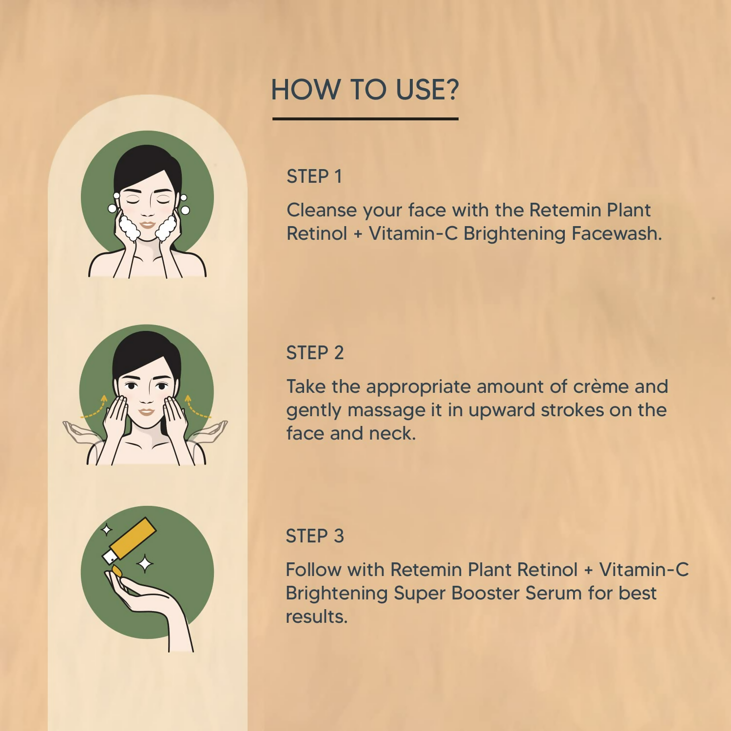 • Cleanse your face with the Retemin Plant Retinol + Vitamin-C Brightening Face wash.