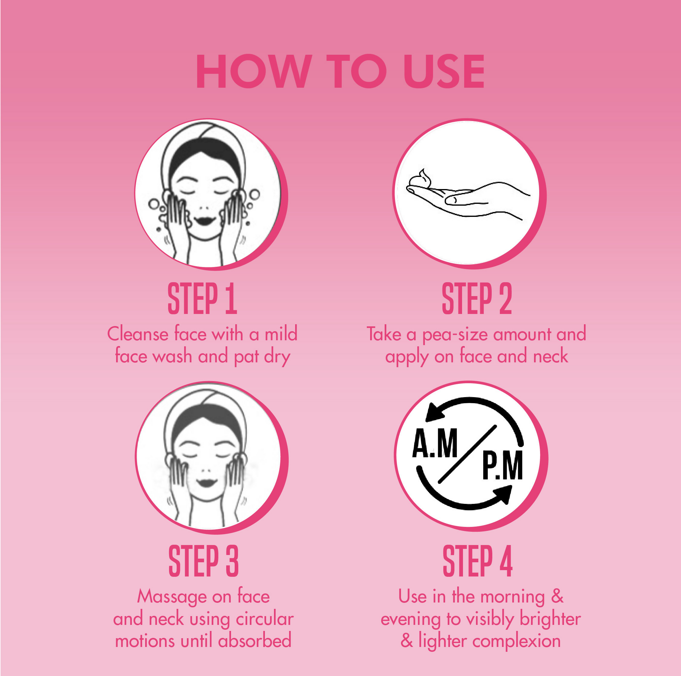 • Take a pea-sized amount of the cream and massage on the face and neck using circular motions until absorbed.