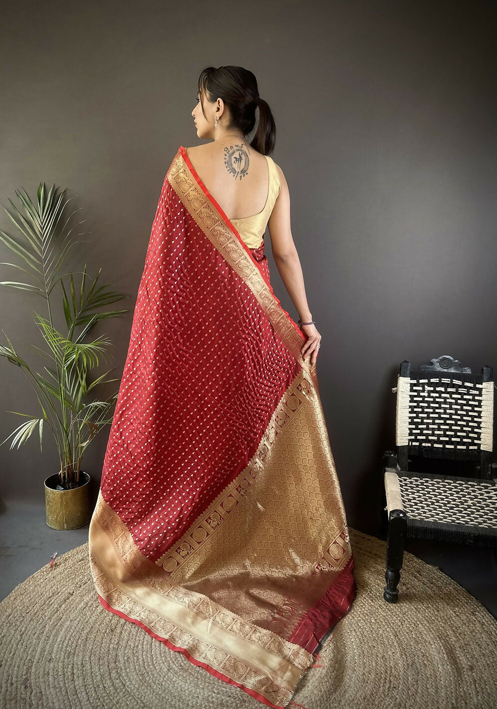Joban Fashion Brick Red Small Butti Banarasi Silk Sarees