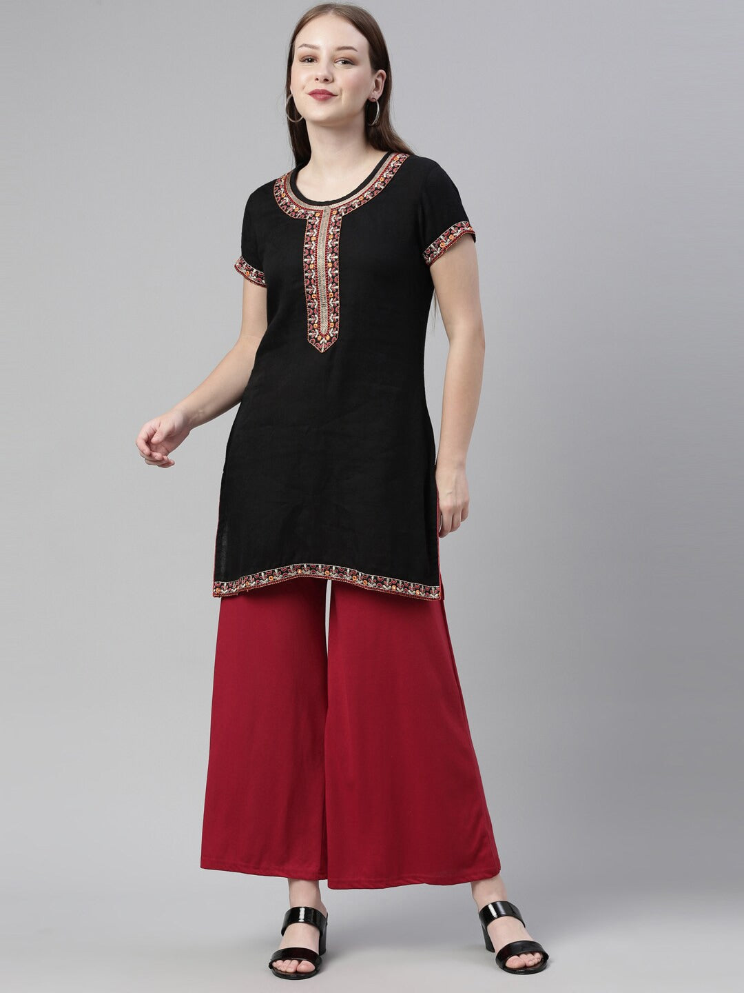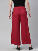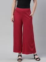 Souchii Maroon Knitted Cotton Ethnic Palazzos Maroon knitted palazzos Solid Opaque Wide leg fit Elasticated waistband Length: regular Knitted polyc...