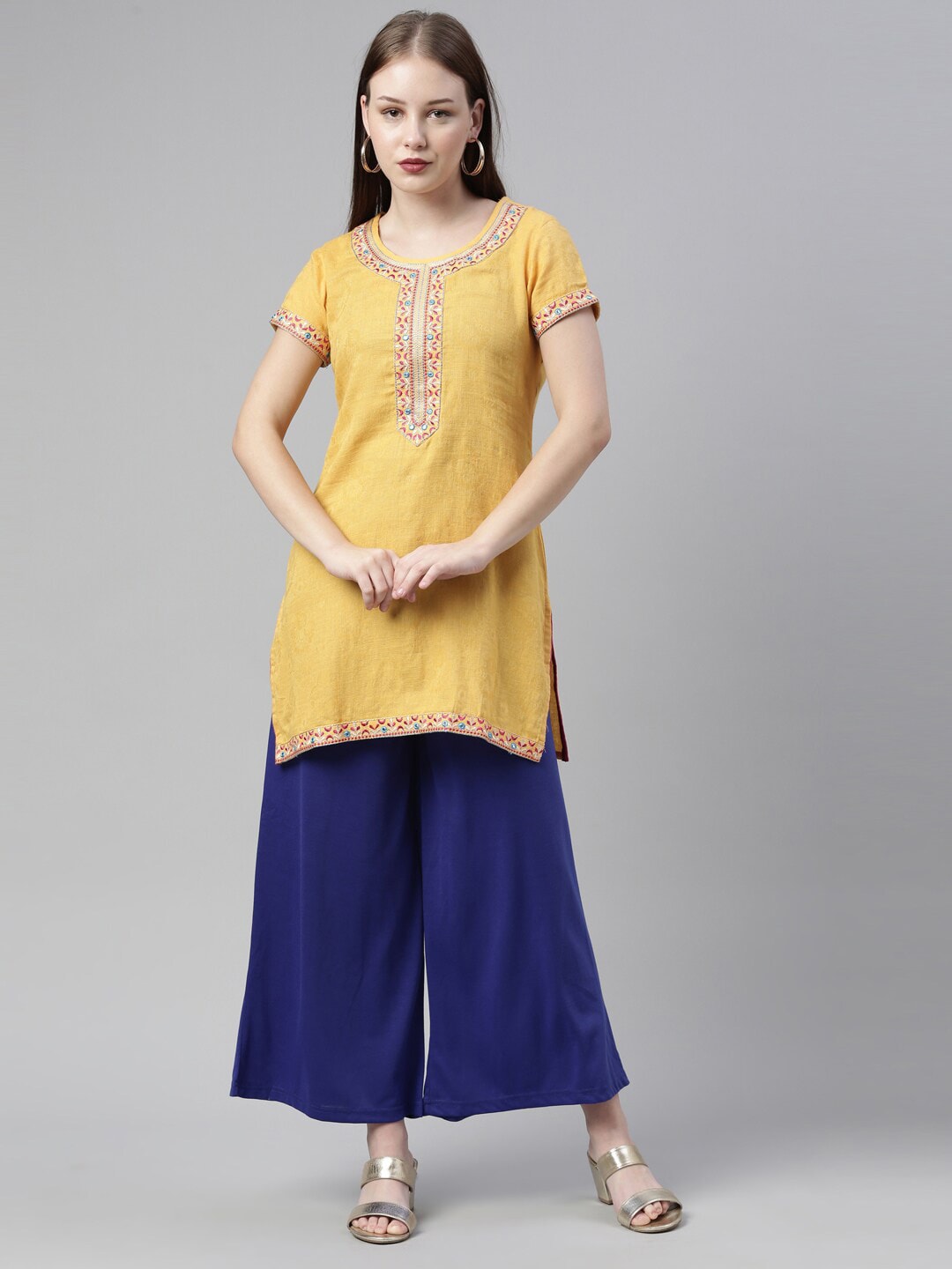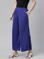 Souchii Navy Blue Knitted Ethnic Palazzos Navy blue knitted palazzos Solid Opaque Wide leg fit Elasticated waistband Length: regular Knitted polyco...