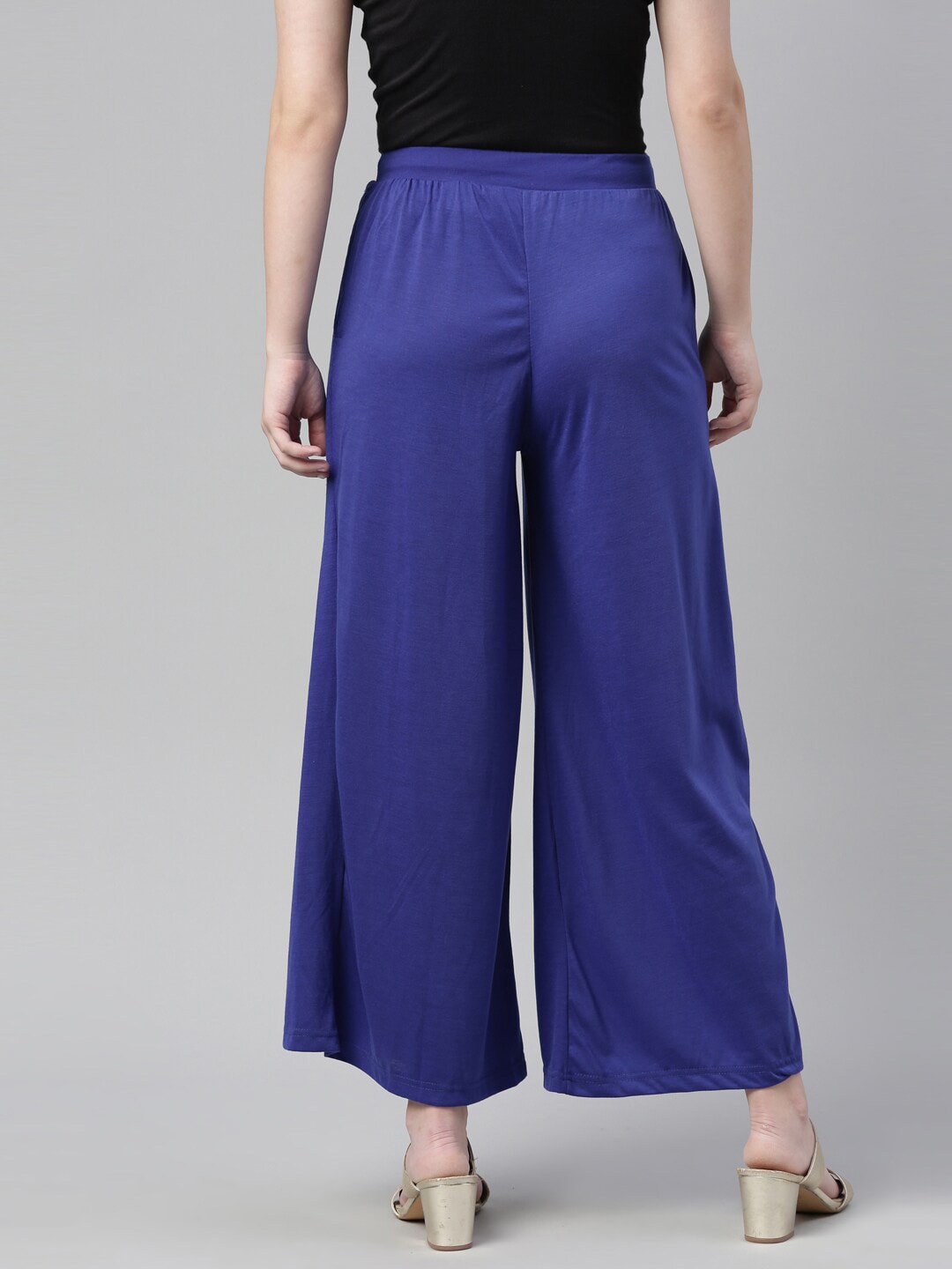 Souchii Navy Blue Knitted Ethnic Palazzos - Distacart