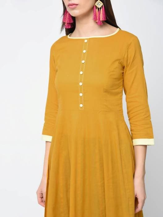 Aniyah Cotton Anarkali Mustard Kurta: