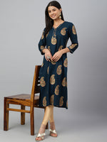 Janasya Women's Teal Blue Rayon Paisley Foil Print Casual Straight Kurta Color: Teal Blue Fabric: Rayon Work/Pattern: Paisley Foil Print Oc...