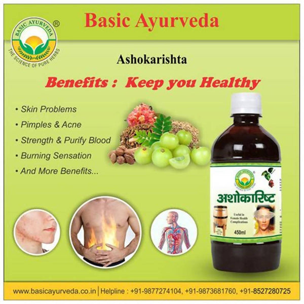 Basic Ayurveda's Ashokarishta is is an Ayurvedic product that is beneficial in supporting women's overall health. It is in skin-related problems. It improves strength and may helps overcome weakness. It may helps in achieving balanced female hormone levels. It is recommended to ease the burning sensation in women.