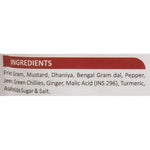 • Fried Gram, Mustard, Coriander, Bengal Gram Dal, Cumin, Pepper, Green Chillies, Ginger, Malic Acid, Turmeric, Asofoetida, Sugar, and Salt