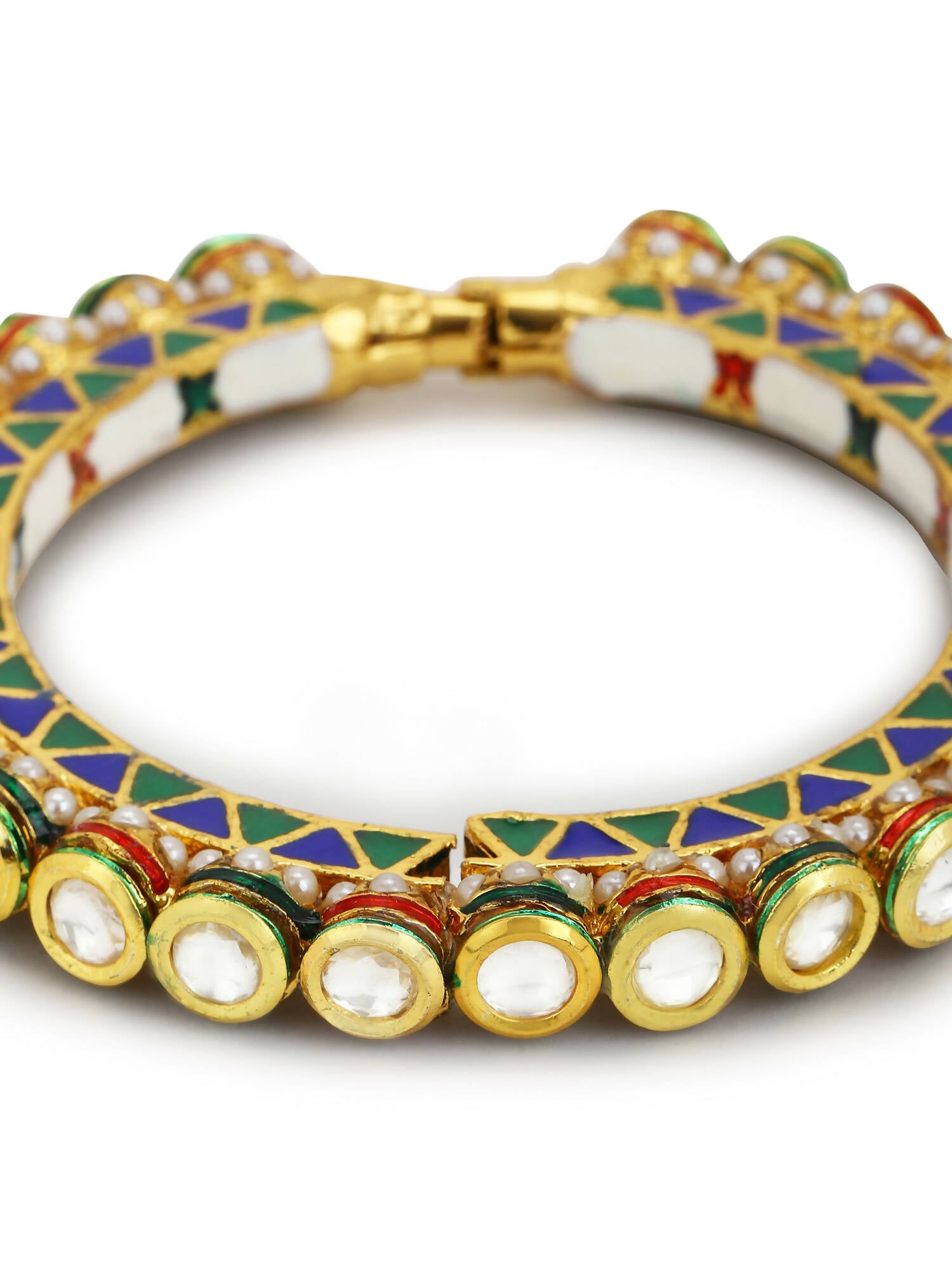 Gold-Polished Stone Studded Meenakari Bangle - Ruby RaangAbout the product: Ruby raang pieces are exquisite and will make you stand out in the crow...