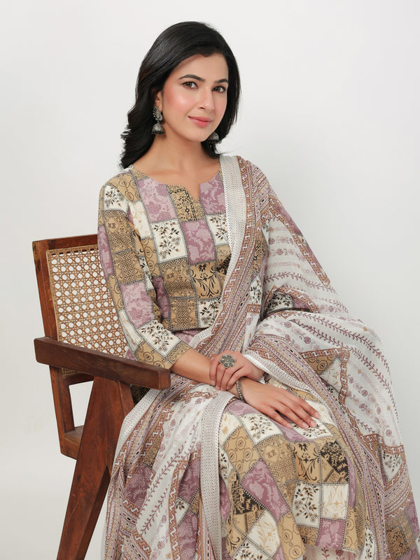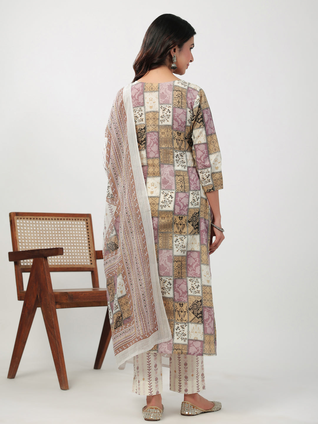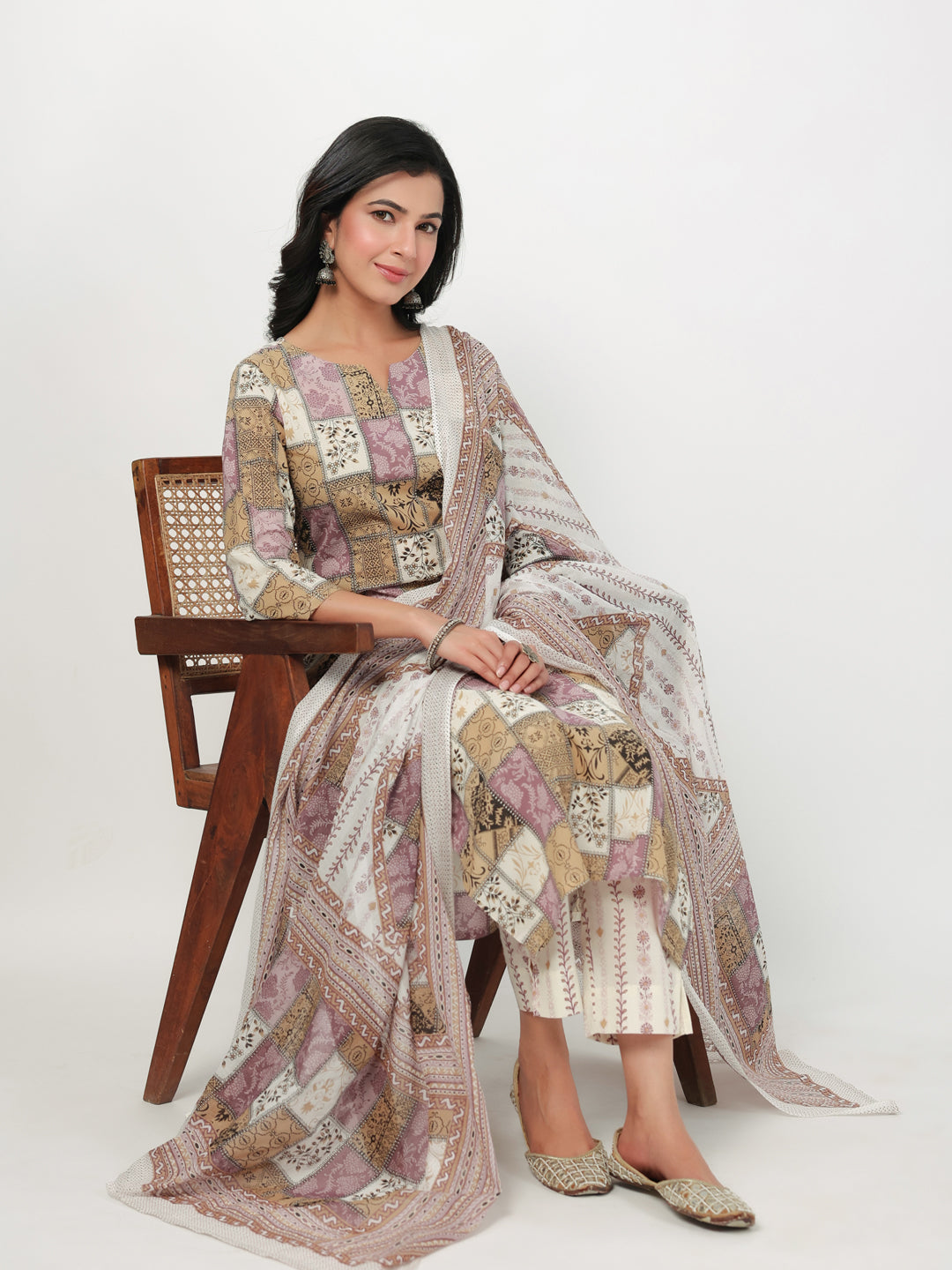 Janasya Regular Cambric Multicolour mix match Notch Neck Set