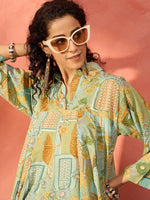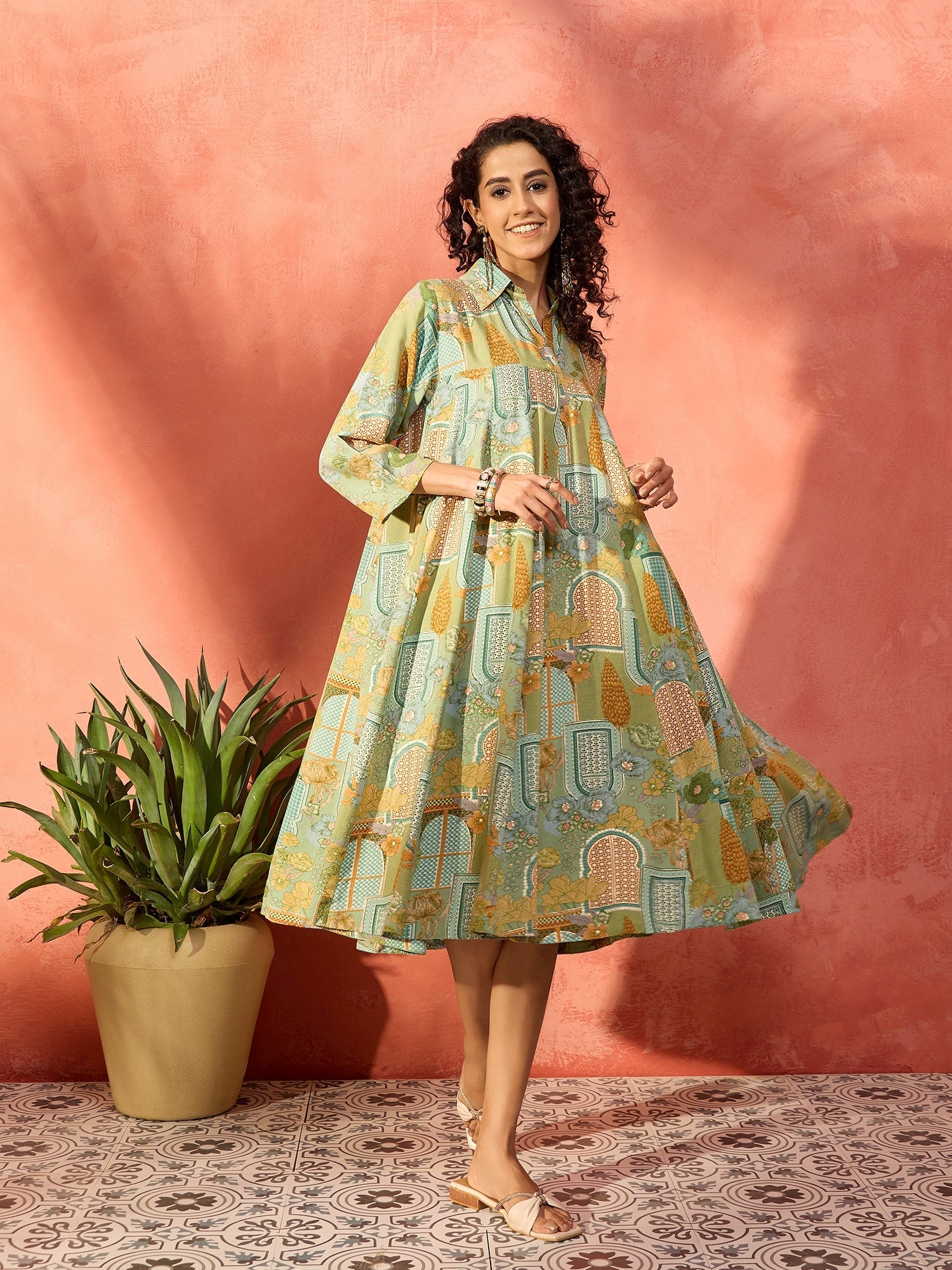InWeave Pear Green Window Floral Flared Collar DressThe Dress is crafted from best of Indian fabrics. Style it with Oxidised jewelery and juttis an...