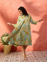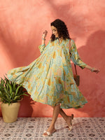 InWeave Pear Green Window Floral Flared Collar Dress - Distacart