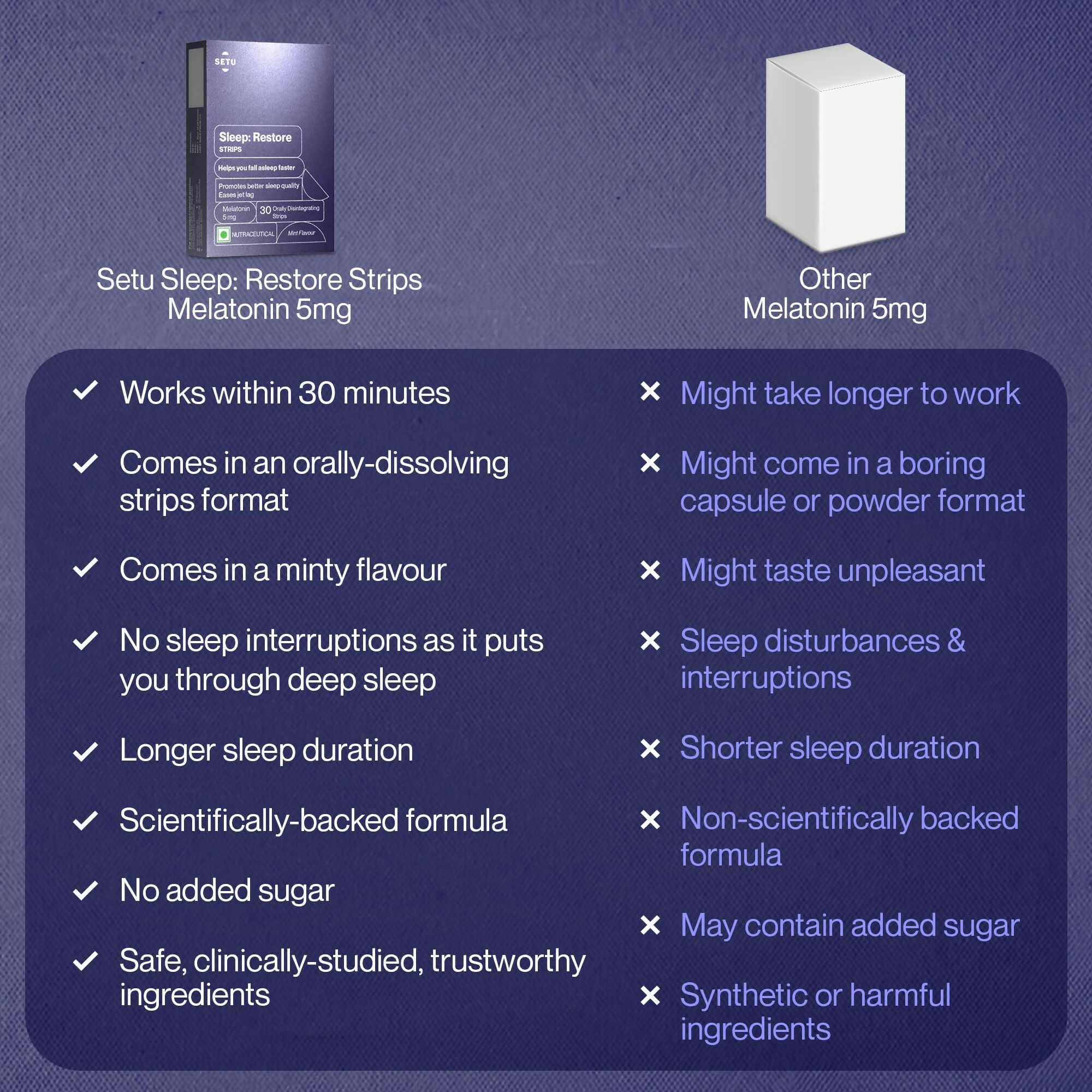 Setu Sleep Restore Plant Based Melatonin - Tasty Mint Flavor - 30 Strips