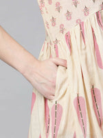 Ahalyaa Women Beautiful Beige Pure Cotton Printed Tunic