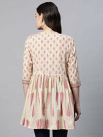 Ahalyaa Women Beautiful Beige Pure Cotton Printed Tunic - S