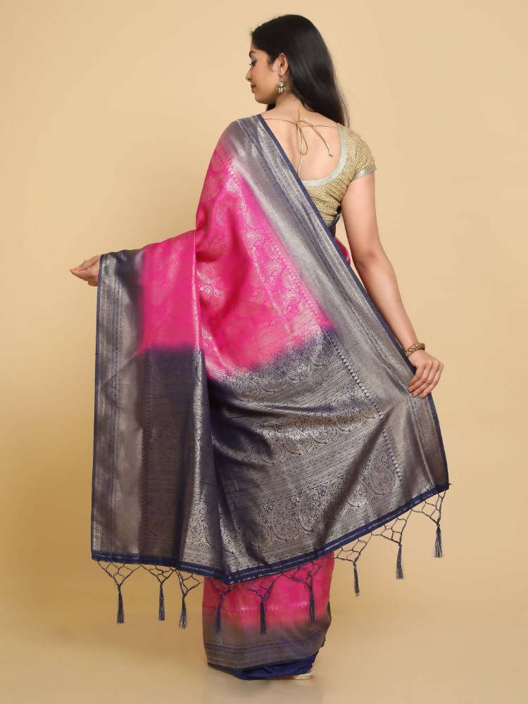 Kalamandir Ethnic Motifs Dark Pink Silk Blend Saree Color: Dark Pink Wash Care: Dry Clean Type: Banarasi Saree Fabric: Silk Blend Blouse Fabri...