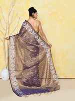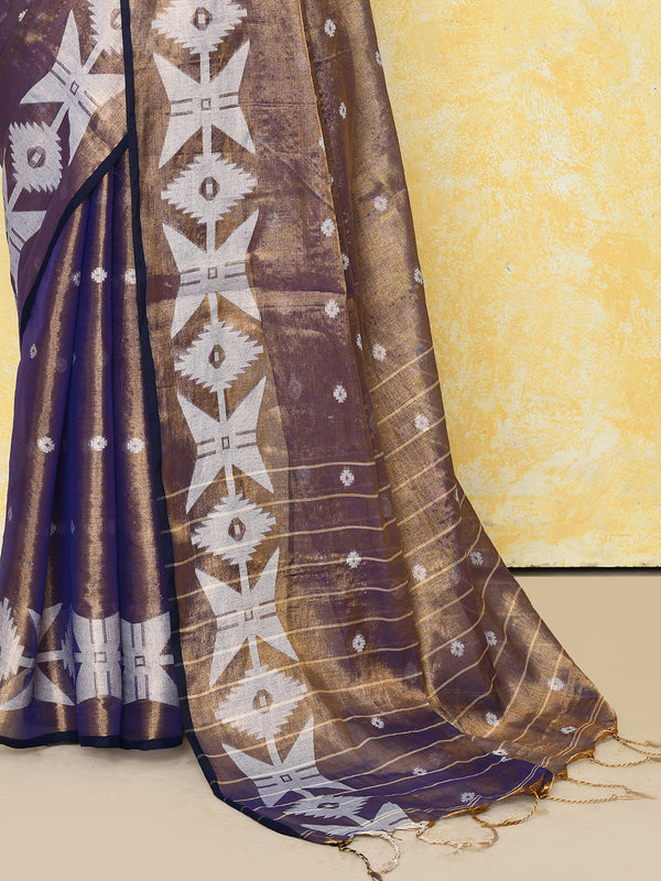 Piyari Fashion Women's Gold Blue Dual Tone Organic Tissue Jamdani Saree With Blouse Piece
