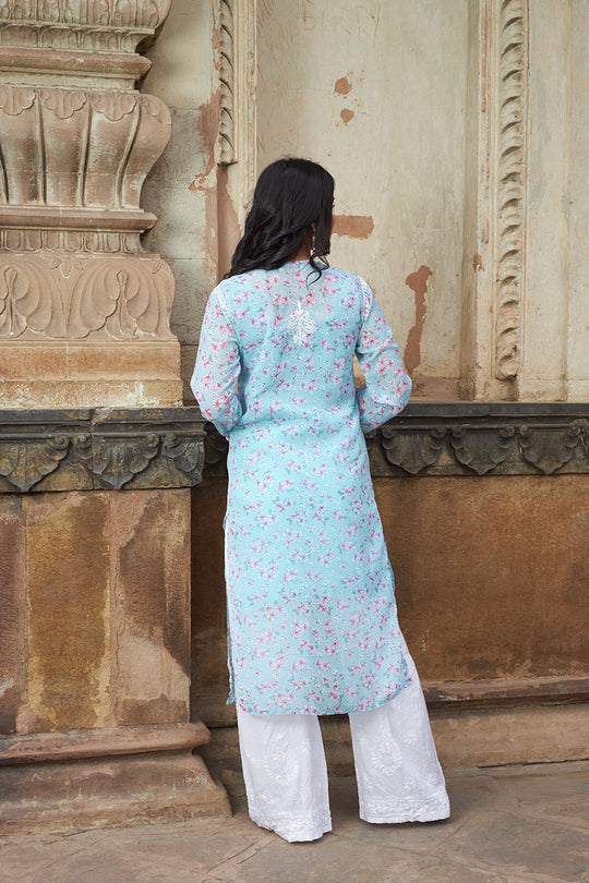 Eliza - premium georgette kurta with intricate handwoven chikankari work Premium mulmul inner provided with the kurta in same colour