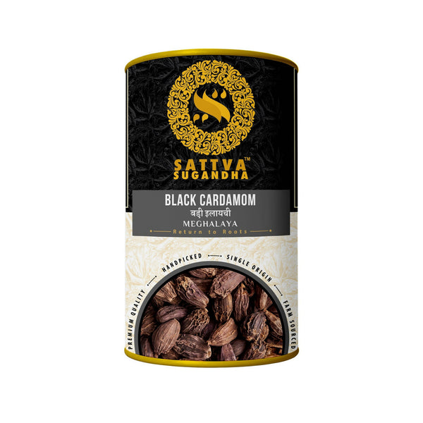Sattva Sugandha Black CardamomAbout The Product:  Black Cardamom pods are smoky deeply aromatic spice and is used in many curry blends alongside th...