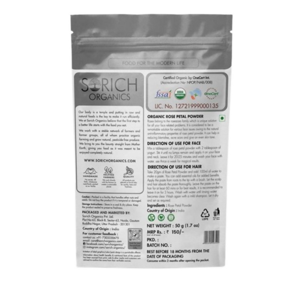 Sorich Organics Rose Petal PowderAbout the product : Rose Petal Powder for Skin and Hair - 100 % Pure and Natural Roses belong to the Rosaceae fam...