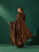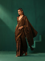 trueBrowns Black Cotton Gold Lurex Striped Ready to Wear Saree - Freesize