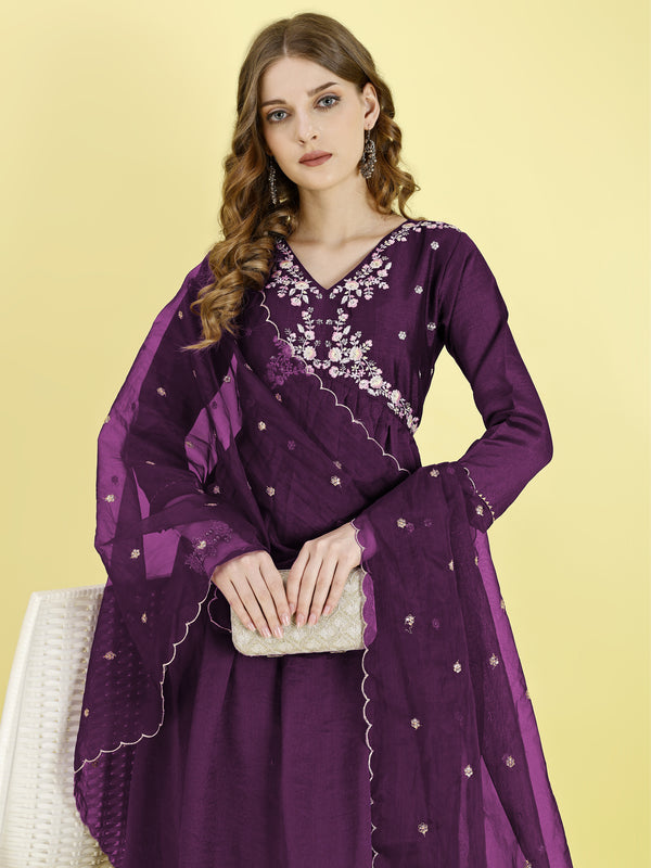 Yash Enterprise Wine Vichitra Silk Embroidery Party Wear Suit Set About the Product: Length of Kurta: 44 Kurta Style: suit Kurta Fabric: VICH...
