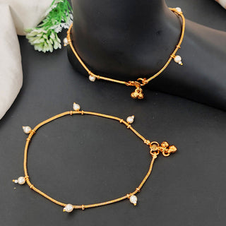JS Fashion High Gold Fancy Pearl Anklet for Women & Girls