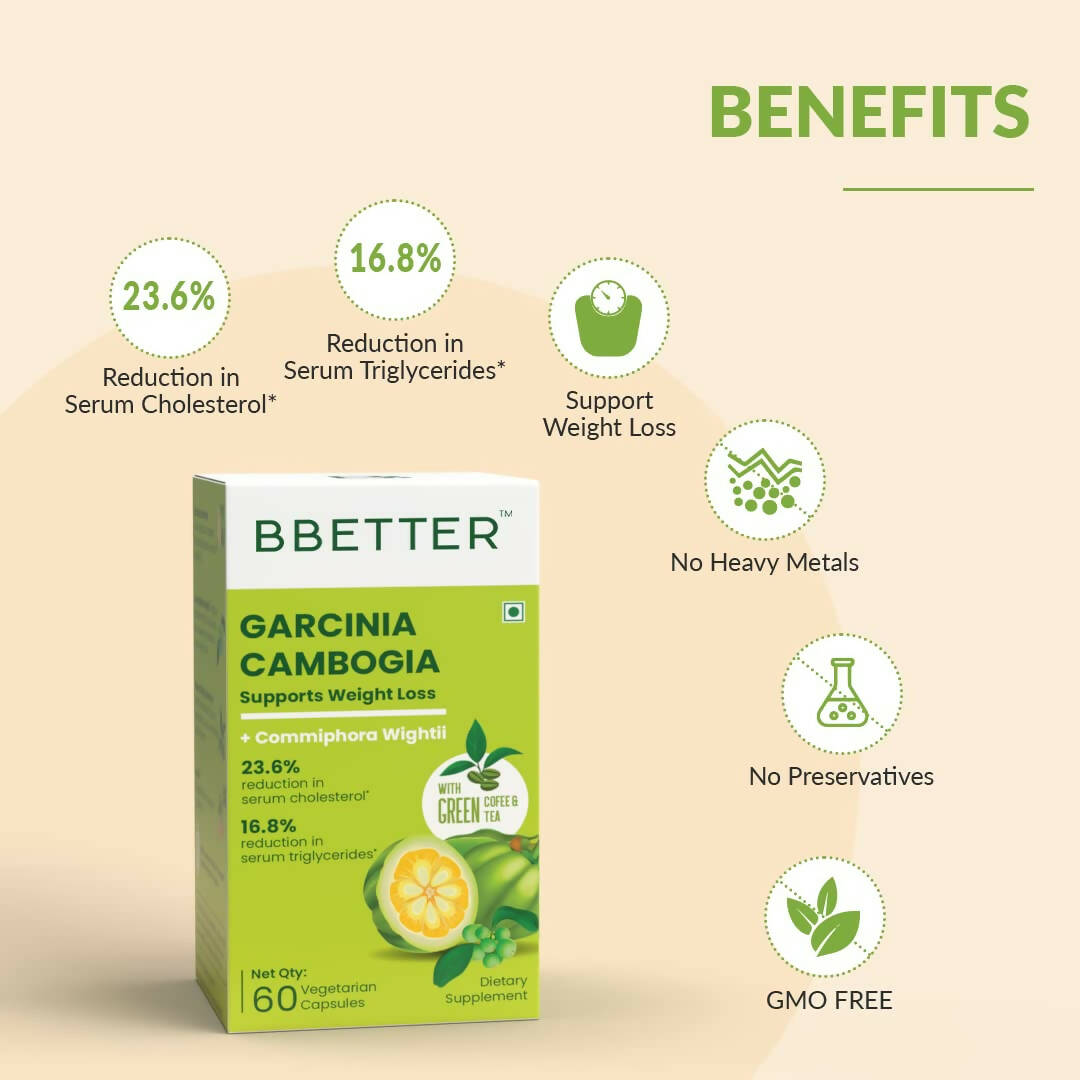 BBETTER Garcinia Capsules With Green Coffee Green Tea Extract - 60 caps