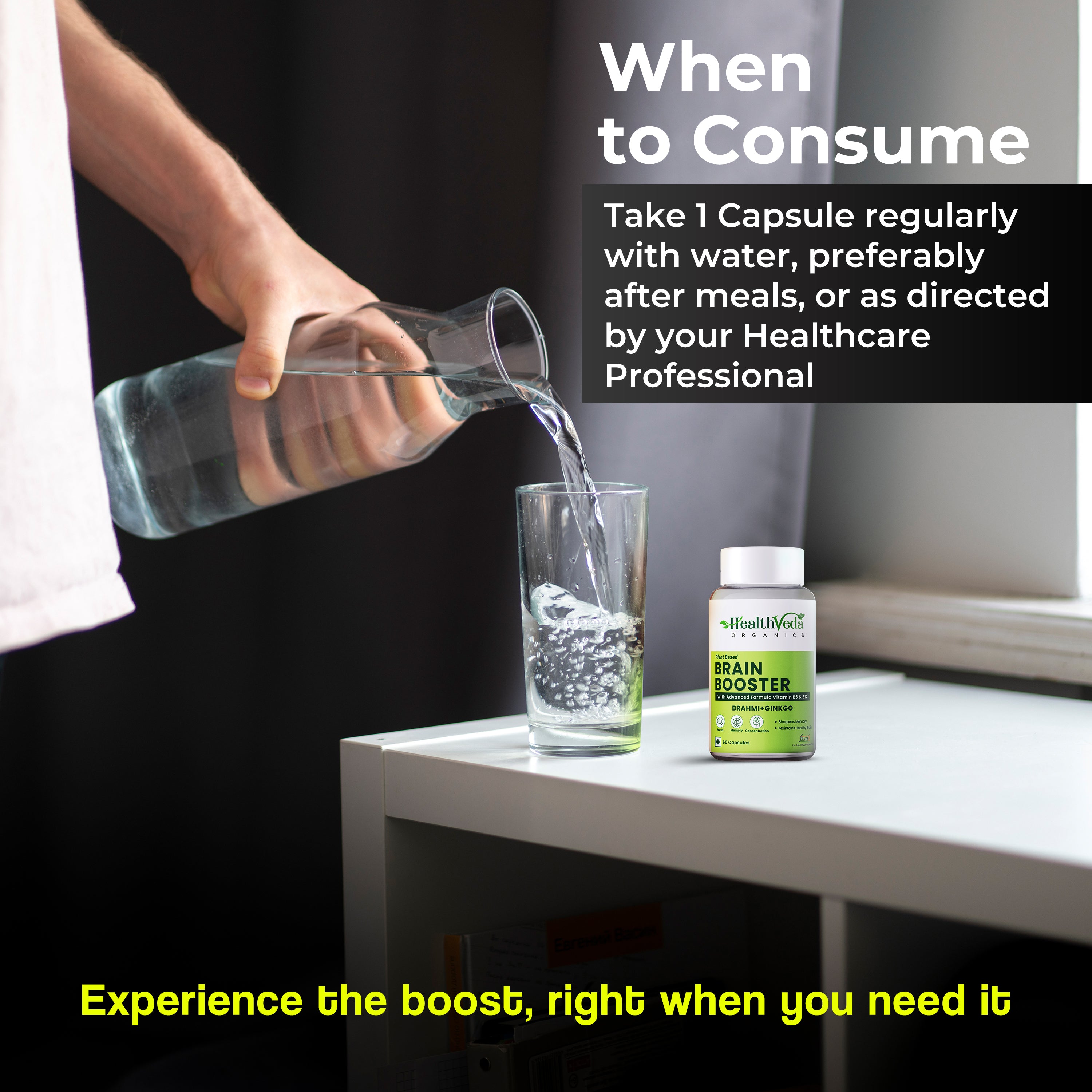 Health Veda Organics Plant Based Brain Booster Capsules  How to Use: Take 1 Capsule regularly with water, preferably after meals, or as directed by...
