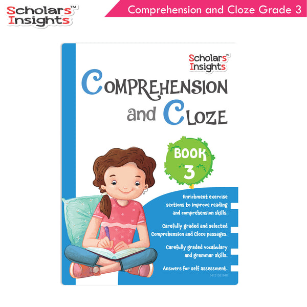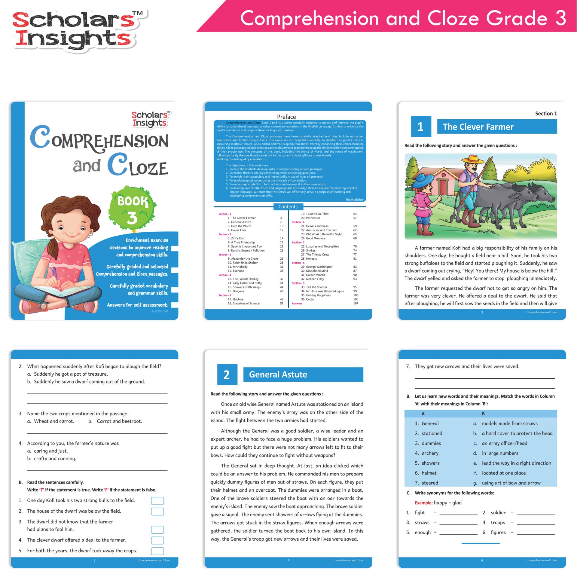 Scholars Insights Comprehension and Cloze Grade 3|English Vocabulary, Grammar Skill Book 3| Ages 8-9 YearsComprehension and Cloze book series speci...