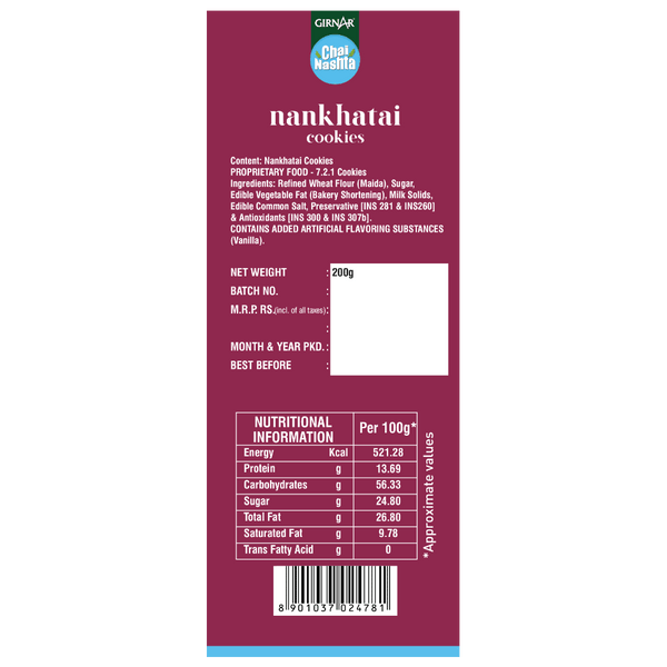 Girnar Chai Nashta - Nankhatai Cookies - 200 gm