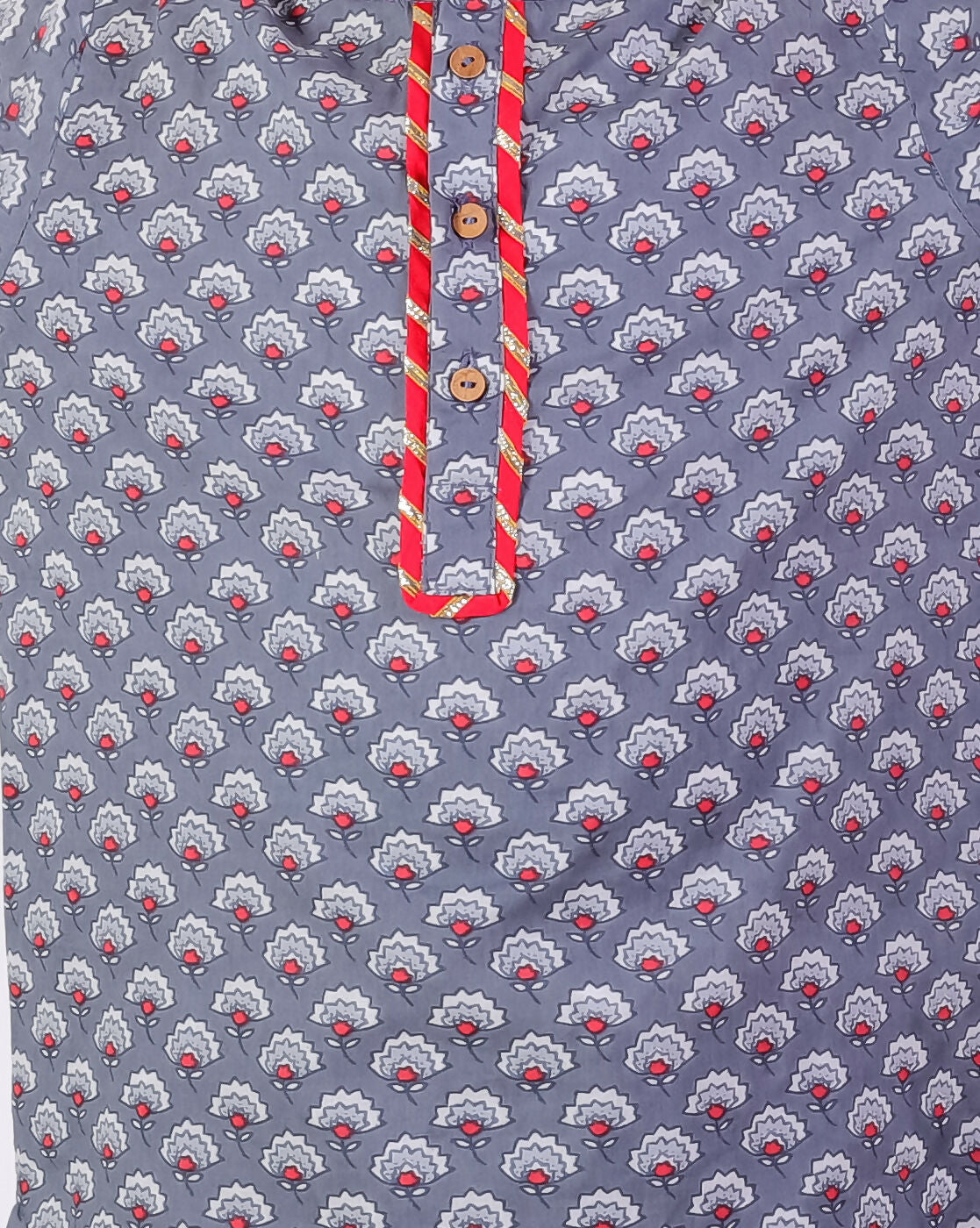 Lil Drama Jaipur Print Stylish Cotton Kurta with Pyjama Set for Boys - Grey