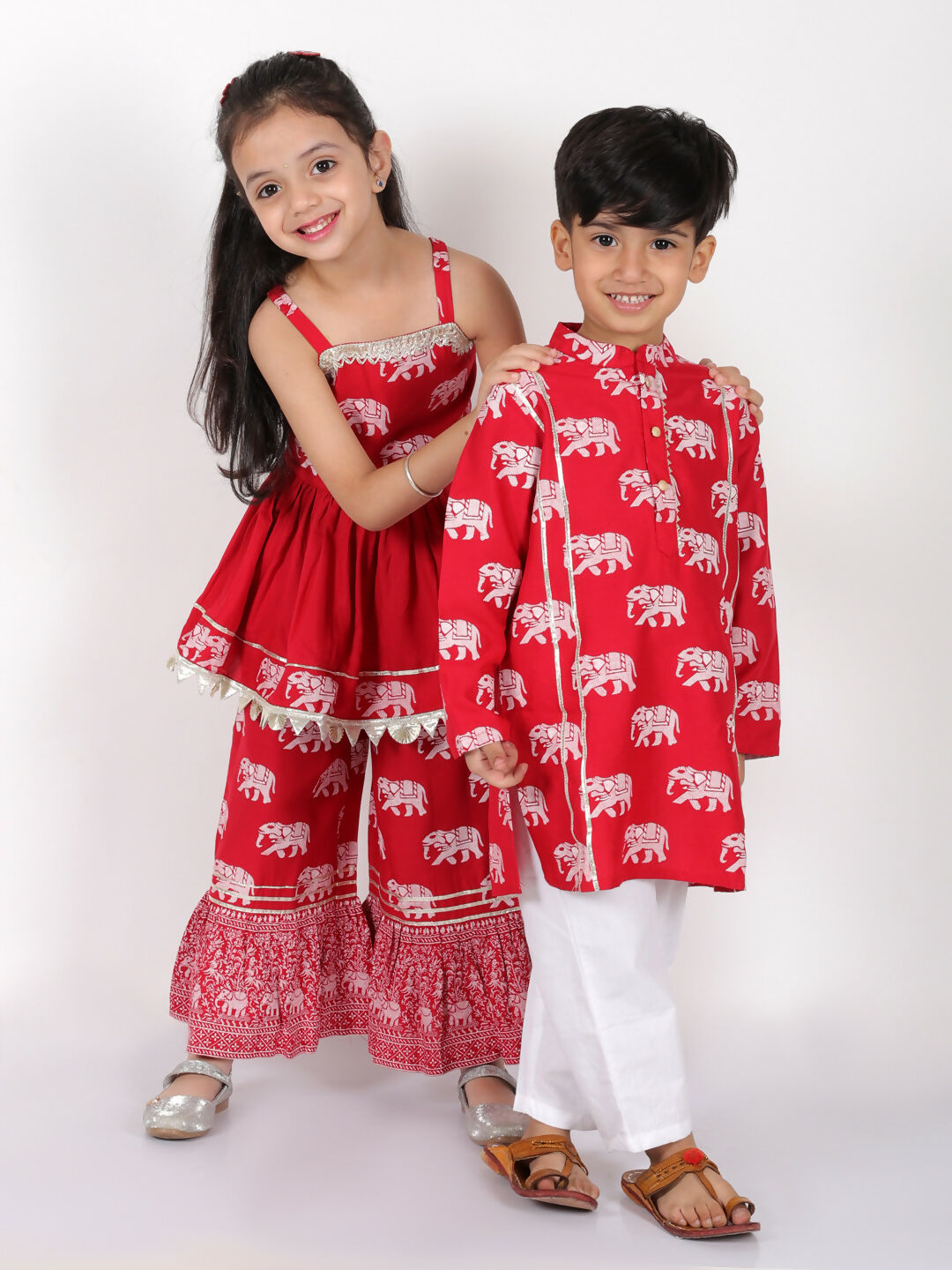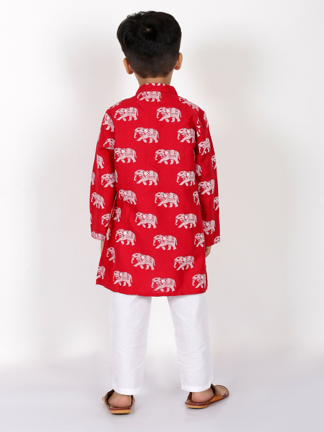 Lil Drama Trunk Tales Boys Red Kurta with Pant set Color: Red Material: Cotton Legal Disclaimer: Product color may slightly vary due to photograp...