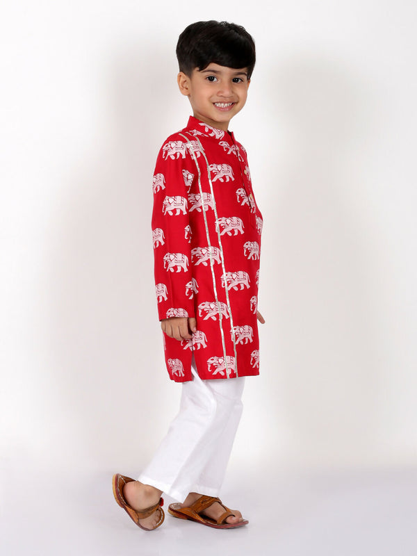 Lil Drama Trunk Tales Boys Red Kurta with Pant set - 12-18M