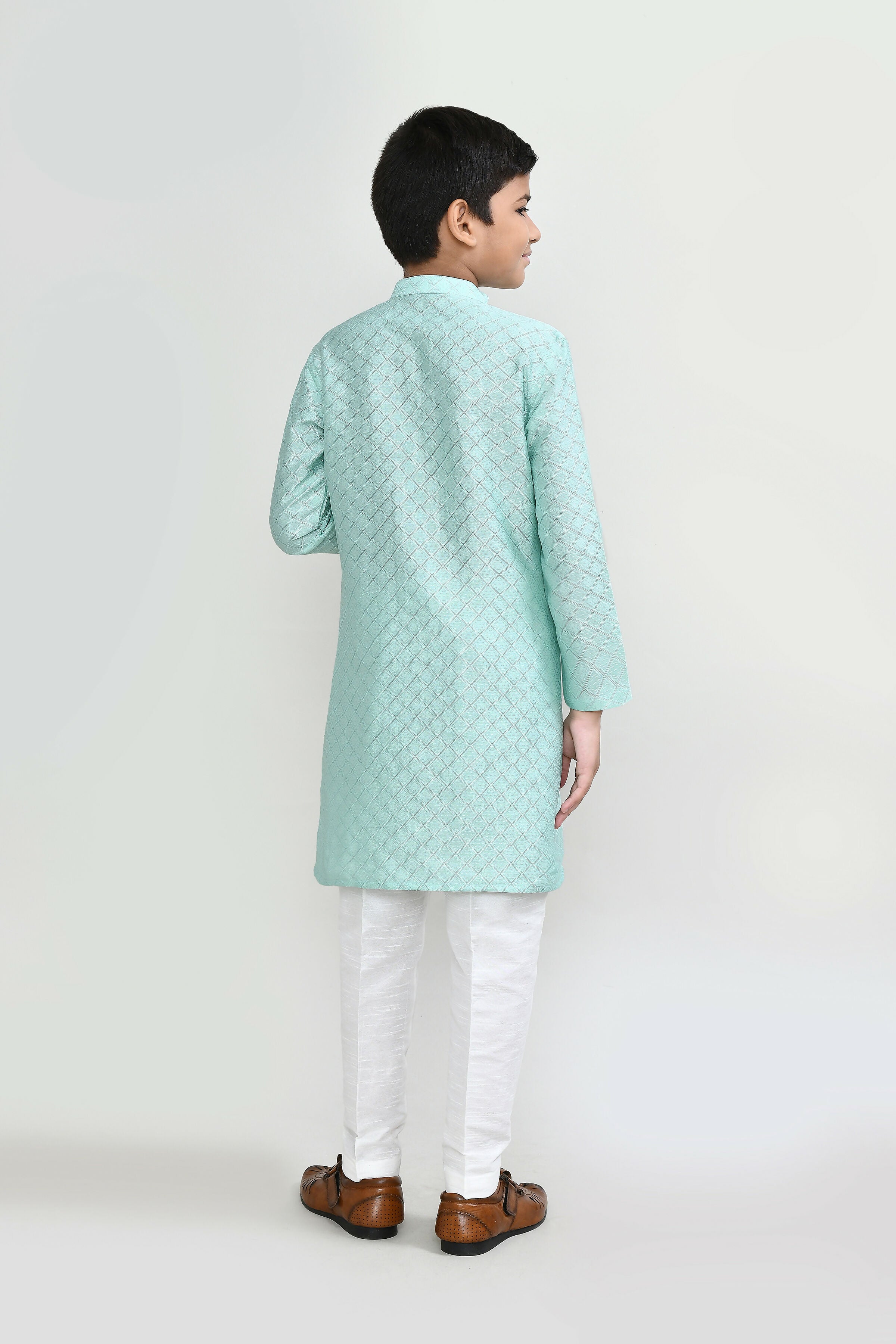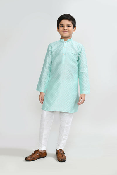 Joban Fashion Cotton Silk Pastel Green Kurta With Straight Fit Pant - 1Y-2Y