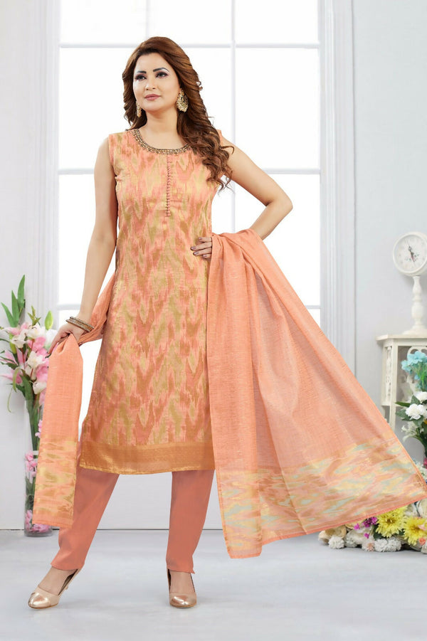 Joban Fashion Jacquard Peach Color Kurta Set Top Color : Peach Lining : Cotton Bottom Color : Peach Dupatta Color : Peach No of Pieces : 3 To...