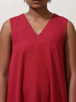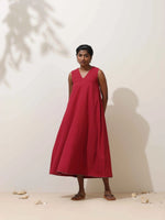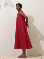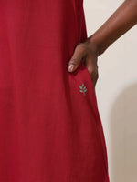 trueBrowns Maroon Cotton Linen Dress - Distacart