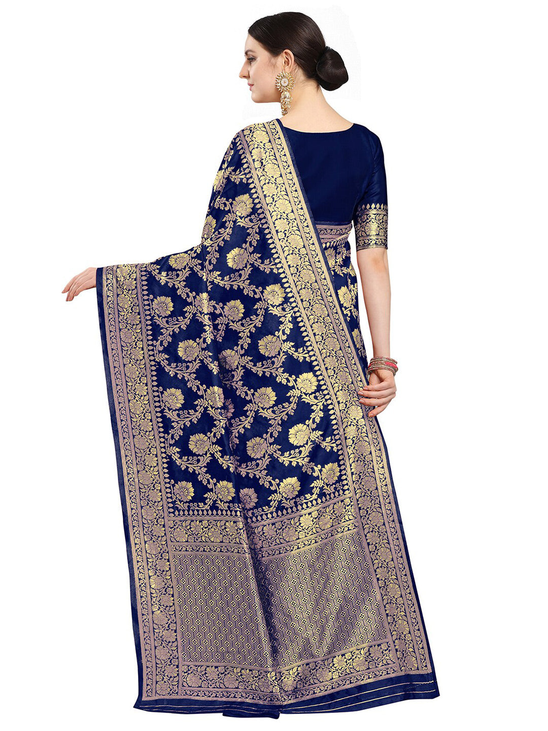• Navy blue and gold-toned banarasi saree
