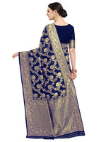 Kalini Navy Blue & Gold-Toned Woven Design Zari Silk Blend Fusion Banarasi Saree - Distacart