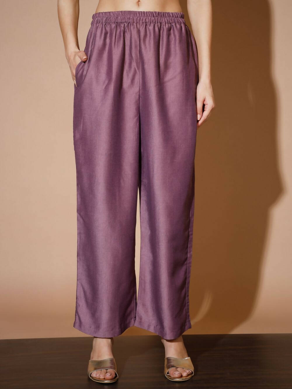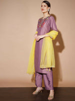 Myshka Mauve Solid Kurta & Palazzos With Dupatta