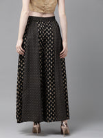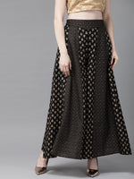 Juniper Women Black Rayon Printed Flared Palazzo
