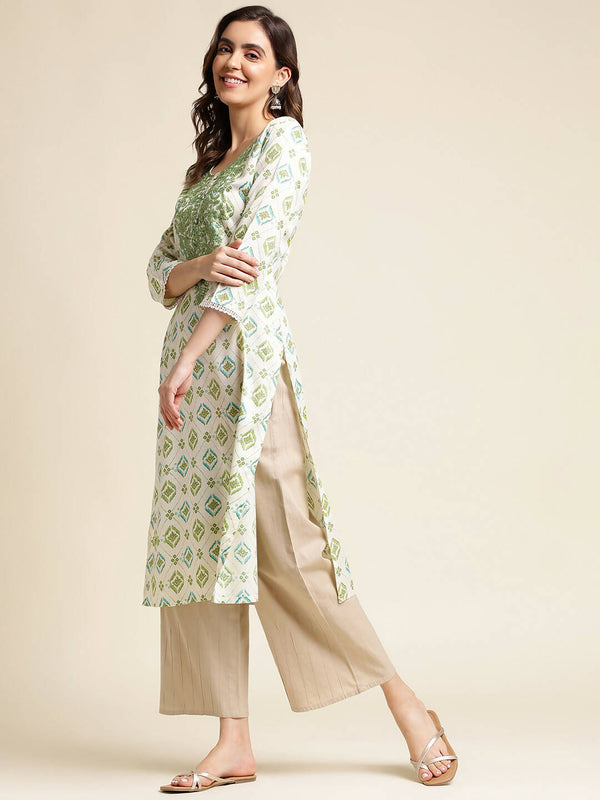 Green Poly Rayon Aztec Printed Straight Fit Kurta - Prasuti