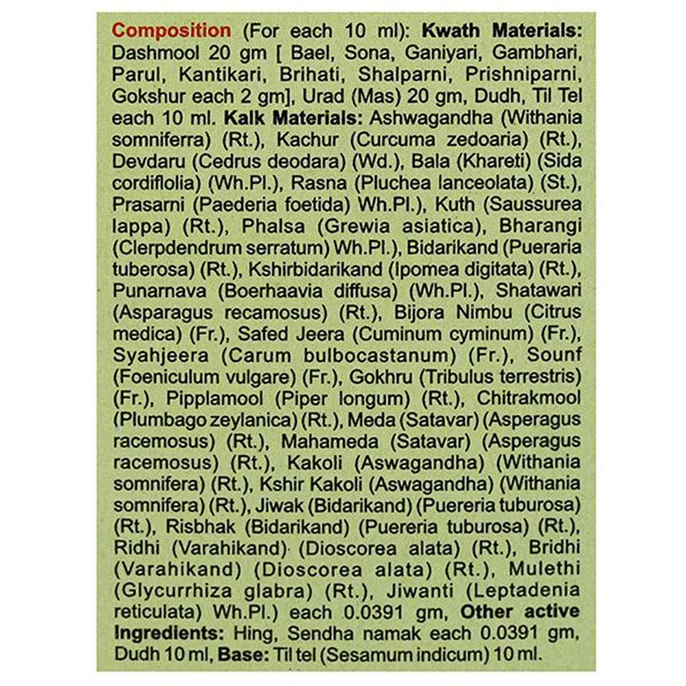For oral administration, the usual dosage is – 5 – 10 drops once or two times a day before food with hot water or as directed by the Ayurvedic expert.