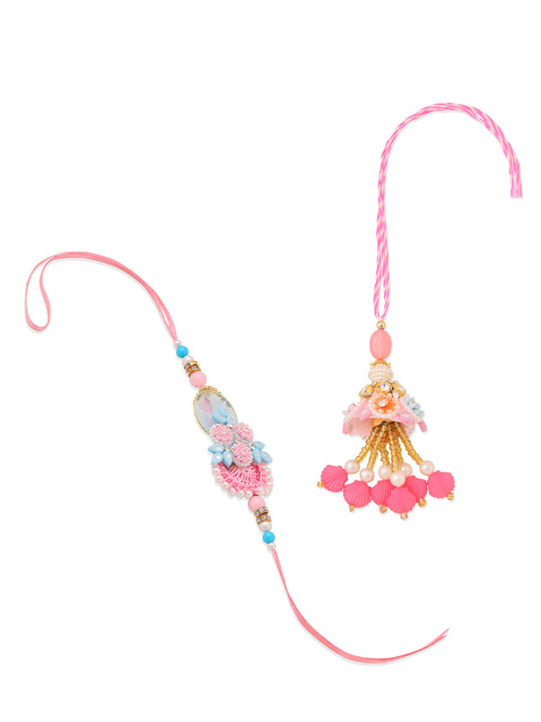 NVR Set of 2 Multicolor Handcrafted Artificial Stones & Pearls Bhaiya Bhabhi Rakhi Combo - Free Size